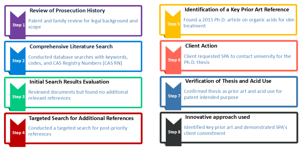 The client commissioned SciTech Patent Art to find prior art for a patent on the use of a particular organic acid for treating a skin condition.
